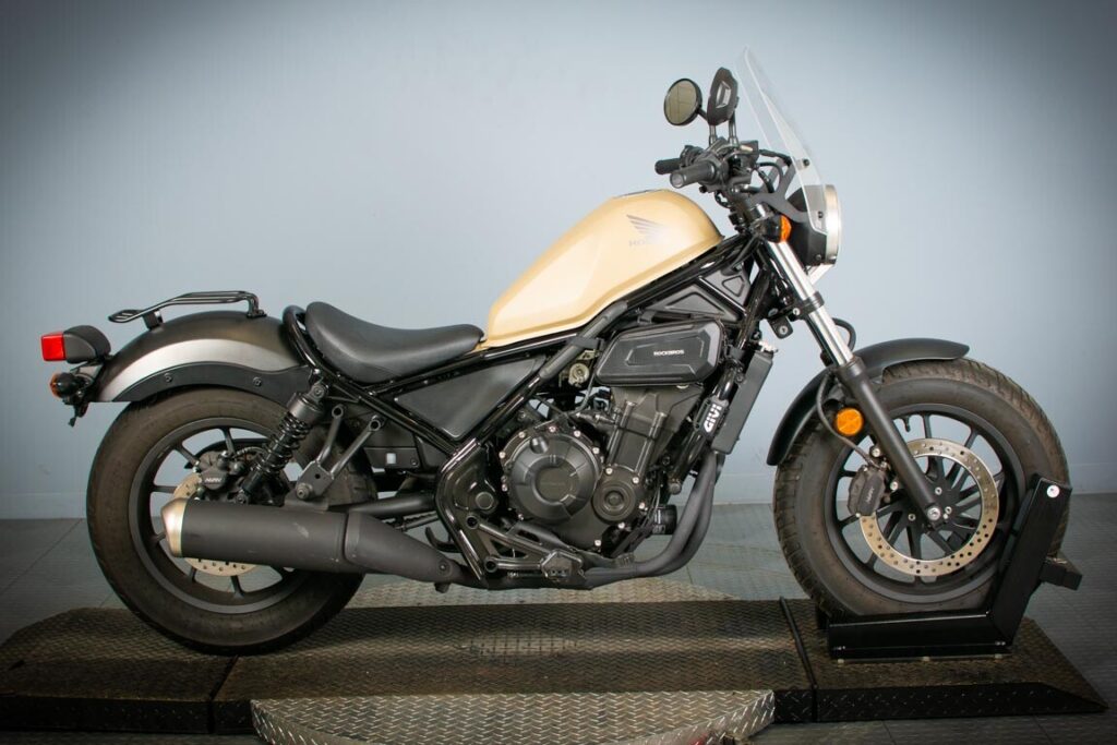 Honda Rebel 500 का डिजाइन पहले से ही अपने रेट्रो और मिनिमलिस्ट स्टाइल के लिए मशहूर है। इसमें चौड़े हैंडलबार, लो-स्लंग सीट, और बड़े टायर दिए गए हैं जो राइडिंग को और भी कम्फर्टेबल बनाते हैं।